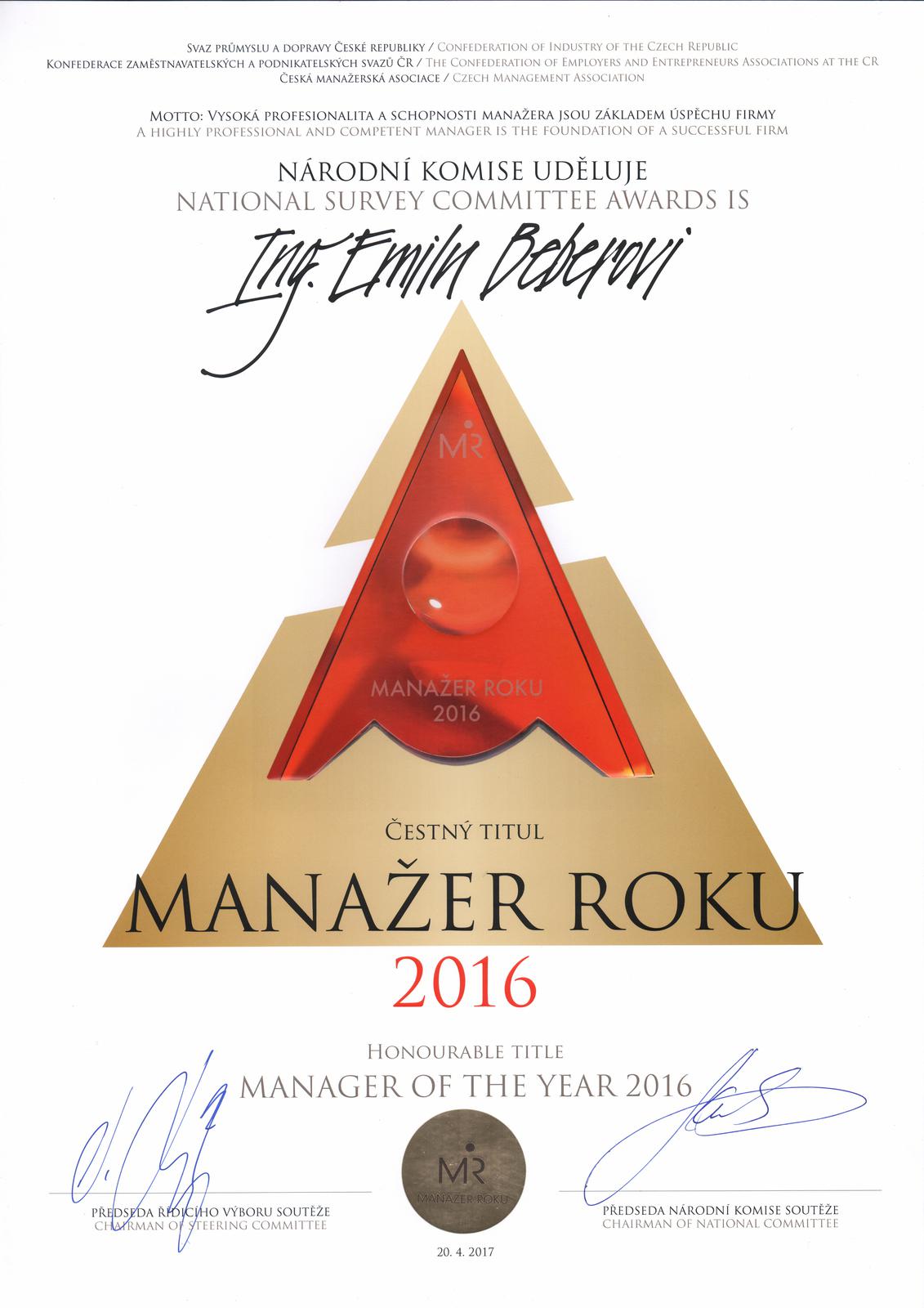 Úvod > O nás > Aktuality > Manažerem roku 2016 v ČR se stal Ing. Emil Beber