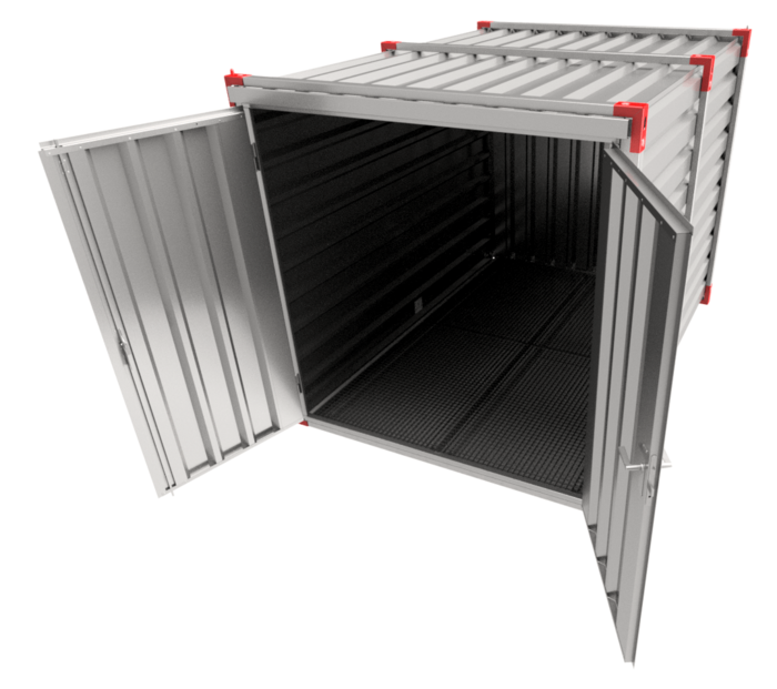 Container 3 m mit Auffangwanne, Doppelflügeltür in Stirnseite