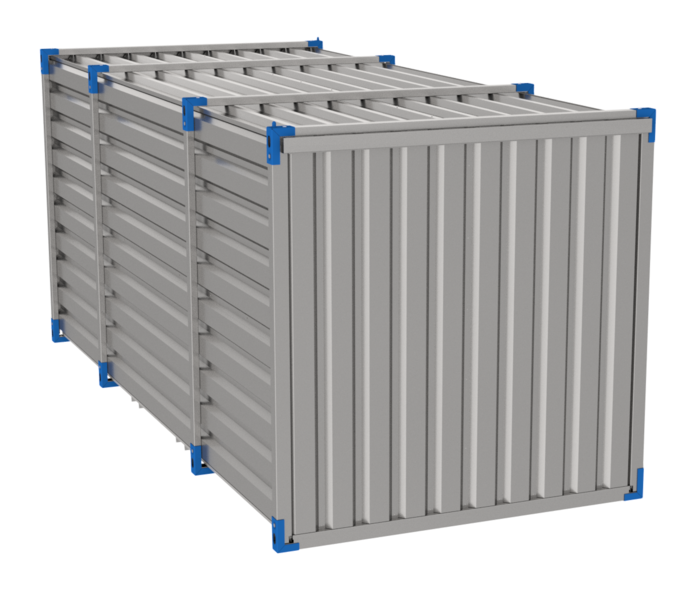 Container 5 m mit Doppelflügeltür in Seitenwand - BLAU (Transportstellung)