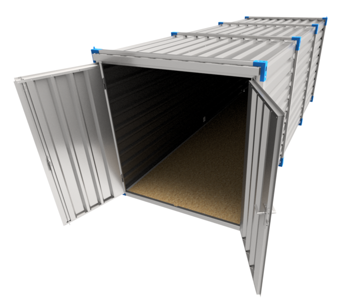 Container 6 m mit Doppelflügeltür in Stirnseite