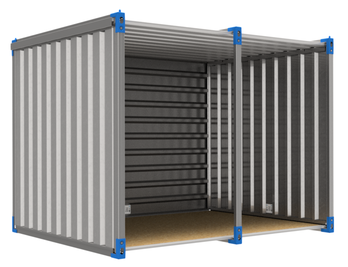 Container 3 m mit Doppelflügeltür in Seitenwand - BLUE (Transportstellung)