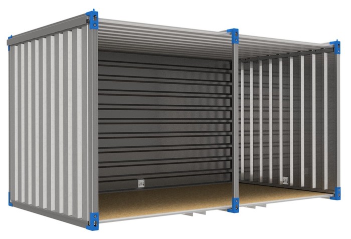 Container 4 m mit Doppelflügeltür in Stirnseite - BLAU (Transportstellung)