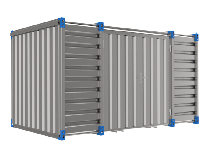 Skladový kontejner 4 m s dvoukřídlými dveřmi v boční stěně