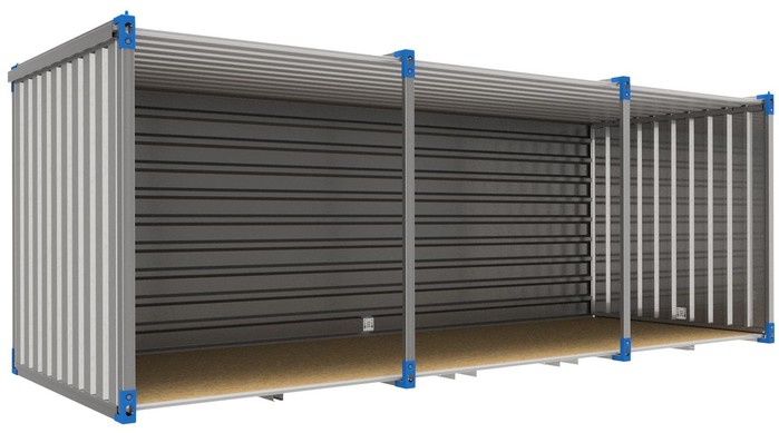 Container 5 m mit Doppelflügeltür in Stirnseite - BLAU (Transportstellung)